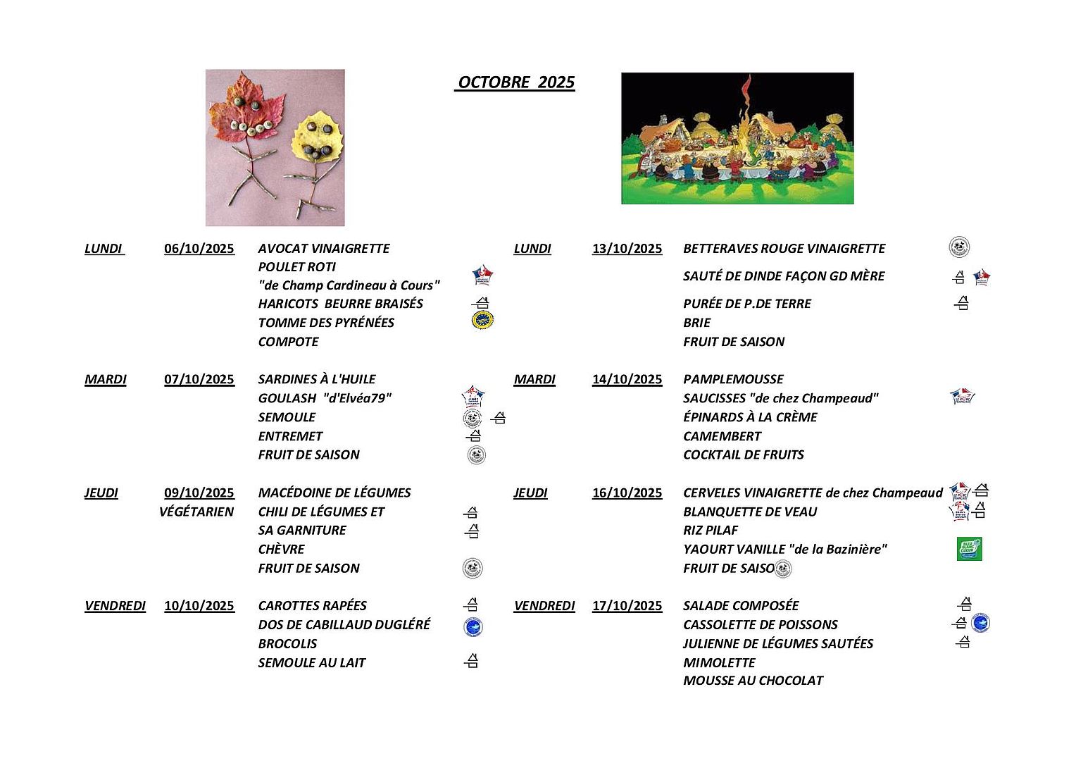 ScolaireMenus à la cantine du TalludQue mangeons-nous cette semaine?Le TalludPublié le 03 octobre 2025 PrécédentRetour à la listeSuivant