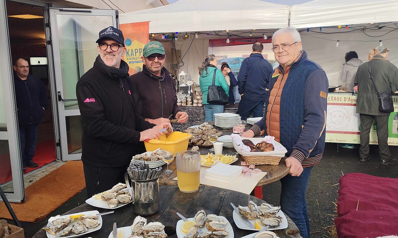 Un agréable moment que beaucoup ont bien fait durer en sirotant un vin chaud autour du brasero, savourant quelques huitres dont le fruit de la vente sera reversée à l'AFM Téléthon (presque 600 €uros selon les 1ères estimations), ou se restaurant de produits fermiers travaillés "maison".