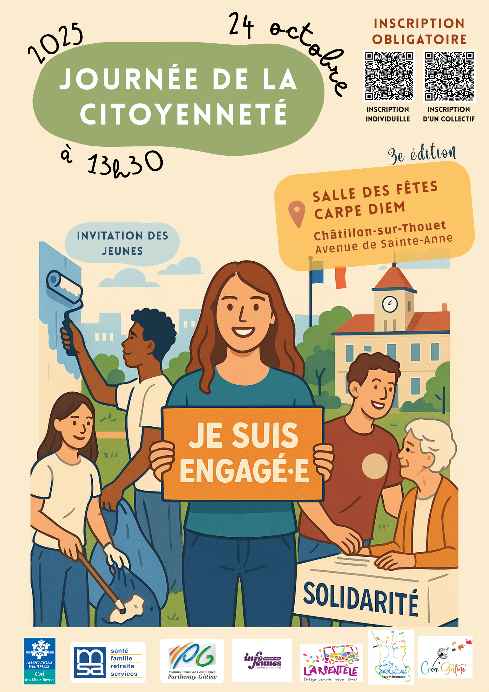 Créatifs, engagés, solidaires…, les jeunes de la Communauté de Communes Parthenay-Gâtine auront de nouveau droit à une belle mise en lumière de leurs projets lors de la troisième édition des Journées de la citoyenneté, le 24 octobre, à la salle Carpe diem de Châtillon-sur-Thouet. Vous faites partie de ceux-là ? Inscrivez-vous à l’événement !